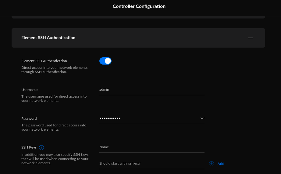 system settings -> controller config -> element ssh